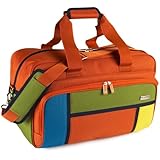 (More customer reviews)I was so excited to get this bag!When I first saw it, I thought it was very unique.The colors and pattern really stood out against all the other bag sets I've seen so far.I figured this would be easy to spot coming off the luggage ramp!When it finally arrived, I was even more impressed with this piece.First of all, let's discuss the size of the bag.It was very roomy.I thought this was just going to be a bag to carry on the items I would need for the trip: magazines, video player, tickets, wallet, etc.Actually, If I were to be going on a short weekend trip (without taking "dressy" items), I could technically take everything in this bag!