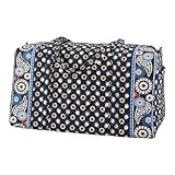 The most popular Vera Bradley bag is hands down the Signature Duffel! Plenty of room inside this beautiful quilted bag.Lined with another fun Vera Bradley fabric. Zip top closure with cute Vera Bradley ribbon zipper pull. Slip pocket on one end.Measures 22"x 11."Nice double 32" handles. This versatile bag sells out fast so don't wait!