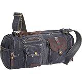 Durable heavy cotton with distressed navy finish, adjustable shoulder strap